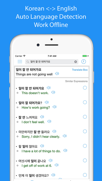 Korean Translator Offline är en utbildnings- och referensapp för iPhone som erbjuder en omfattande översättningstjänst mellan engelska och koreanska. Med överord, fraser och meningar, gör appen det möjligt för användare att söka efter liknande uttryck och meningar. Den har också funktioner för automatisk språkdetection och ljuduttal med mänsklig röst, vilket gör det enkelt att lära sig och använda språket i olika sammanhang.